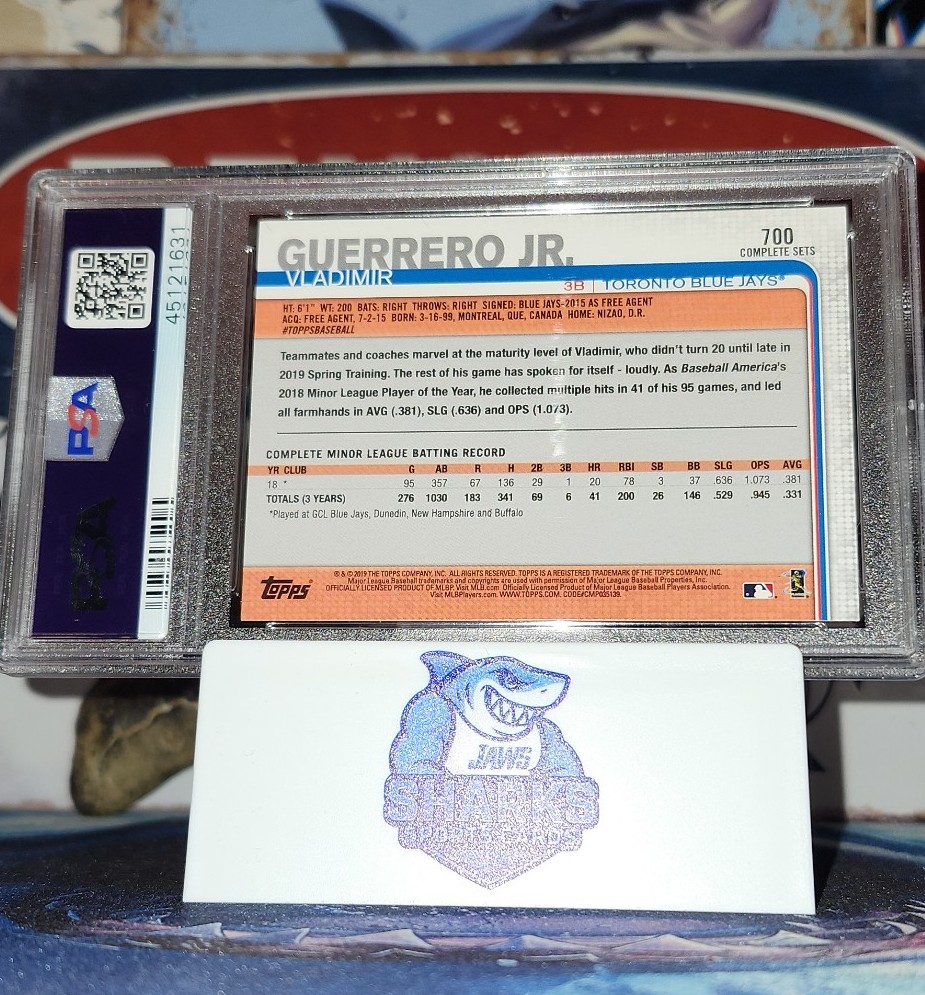 19'(Topps-Topps Complete Sets). Toronto Blue Jays Superstar 1B - Vladimir Guerrero Jr. 19' Topps Complete Sets Batting Rookie Card PSA Gem 10 Slab. *(Bundle Included)*